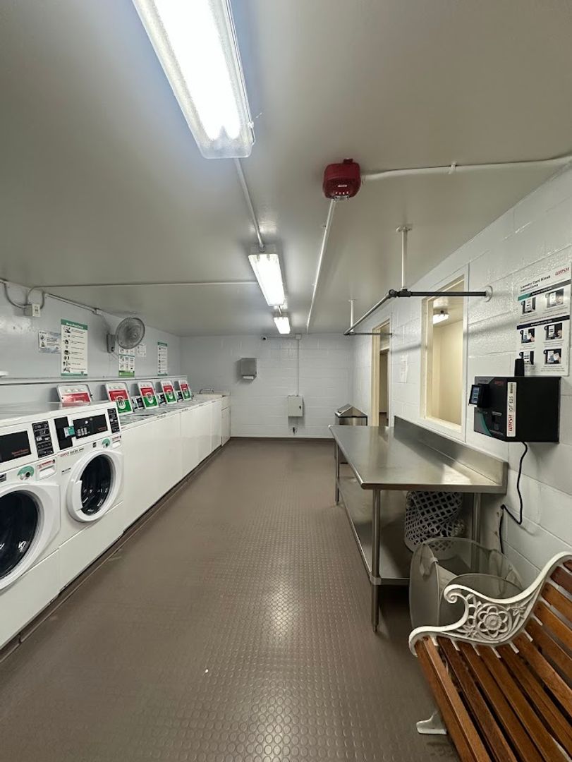 Appliances: electric range with oven, microwave hood, refrigerator, central AC, clean community laundry facilities.
