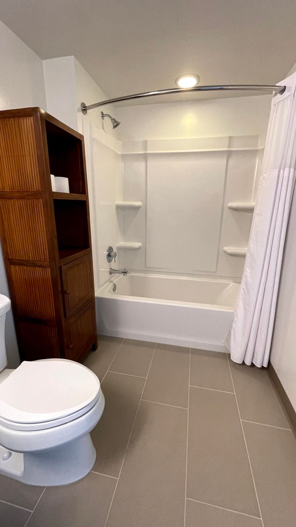 This Mauka-facing unit features mountain views and a thoughtfully designed interior with granite countertops, stainless steel appliances, dark brown cabinetry, and durable vinyl plank flooring. Living areas and bedrooms are carpeted for comfort, while bathrooms feature porcelain tile. Each room is equipped with air conditioning.