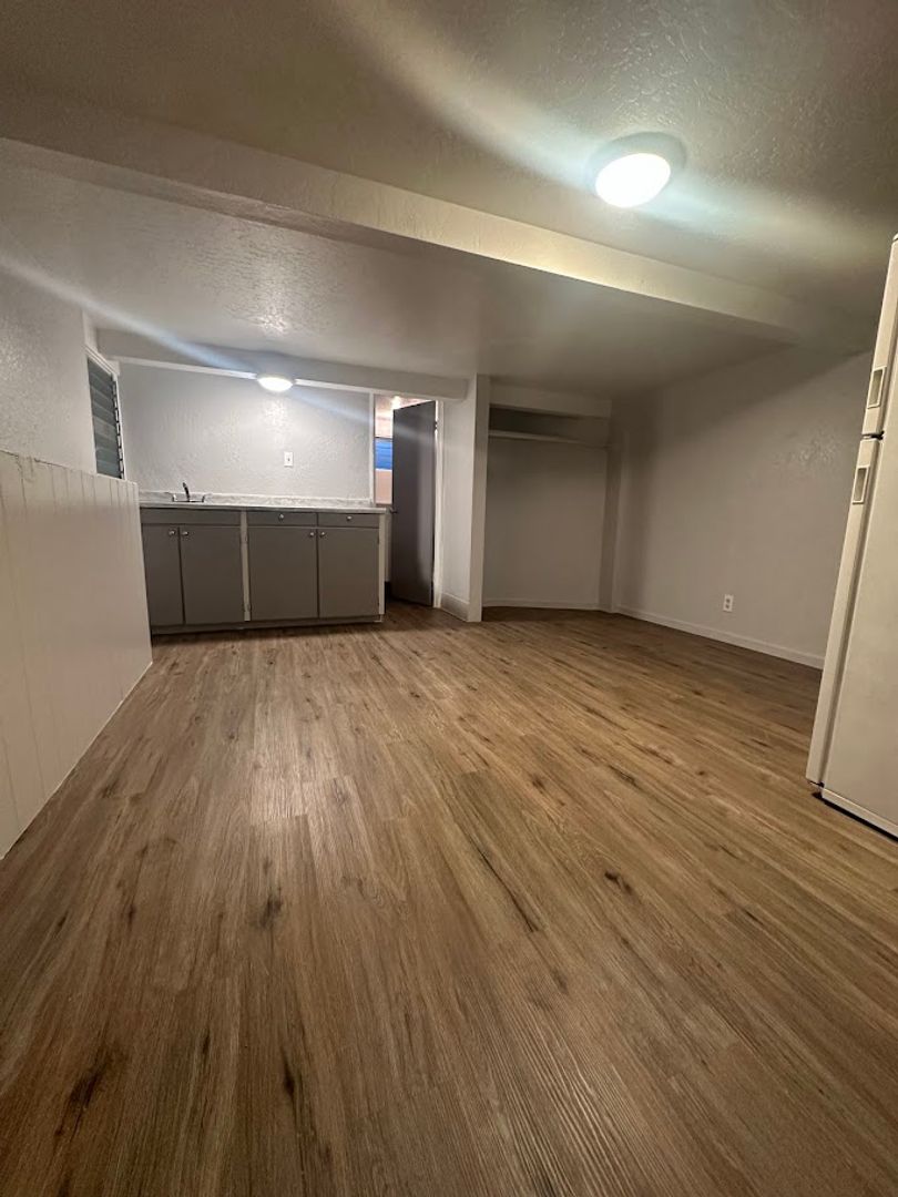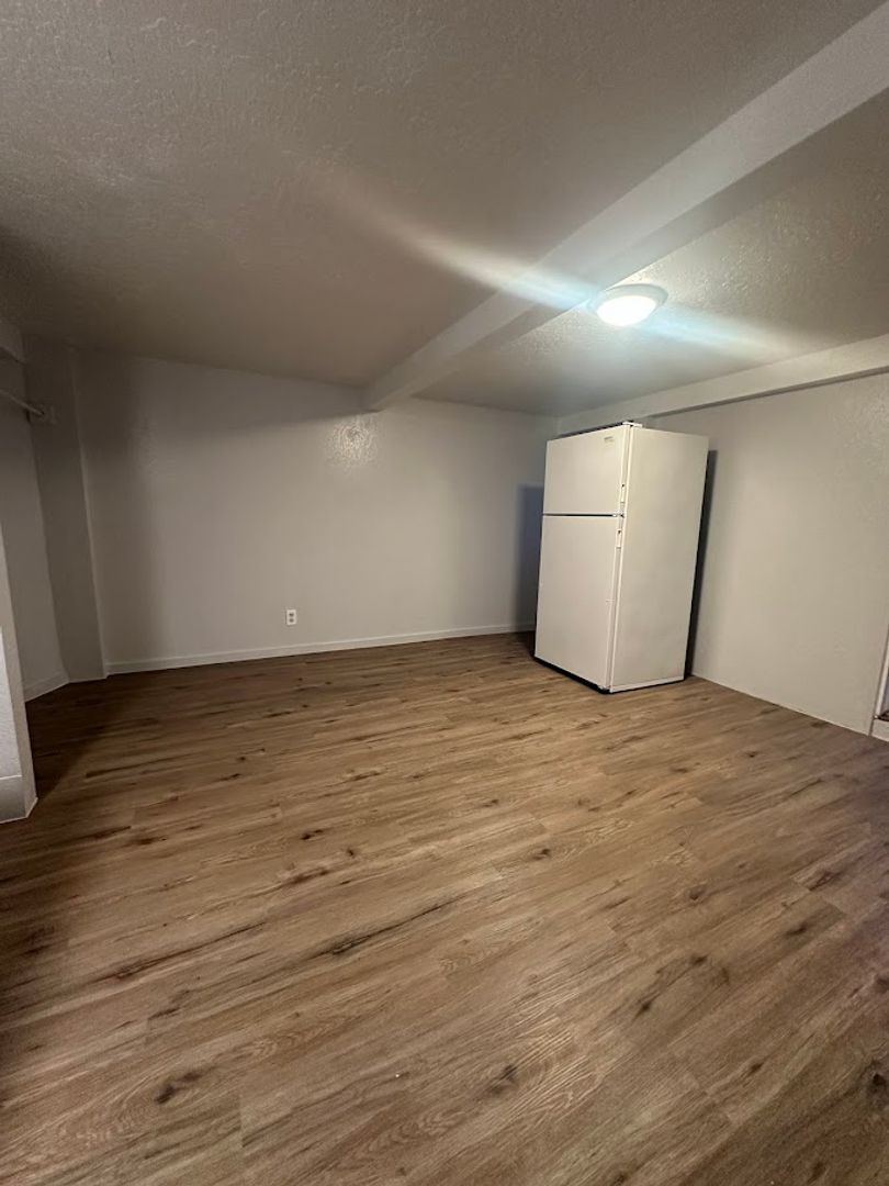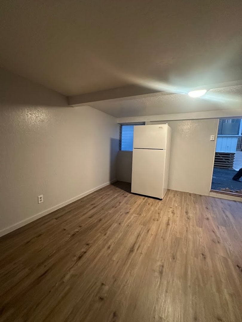 but provided with own refrigerator and hot plate, no parking, recently refurbished (new vinyl plank floors, new paint)